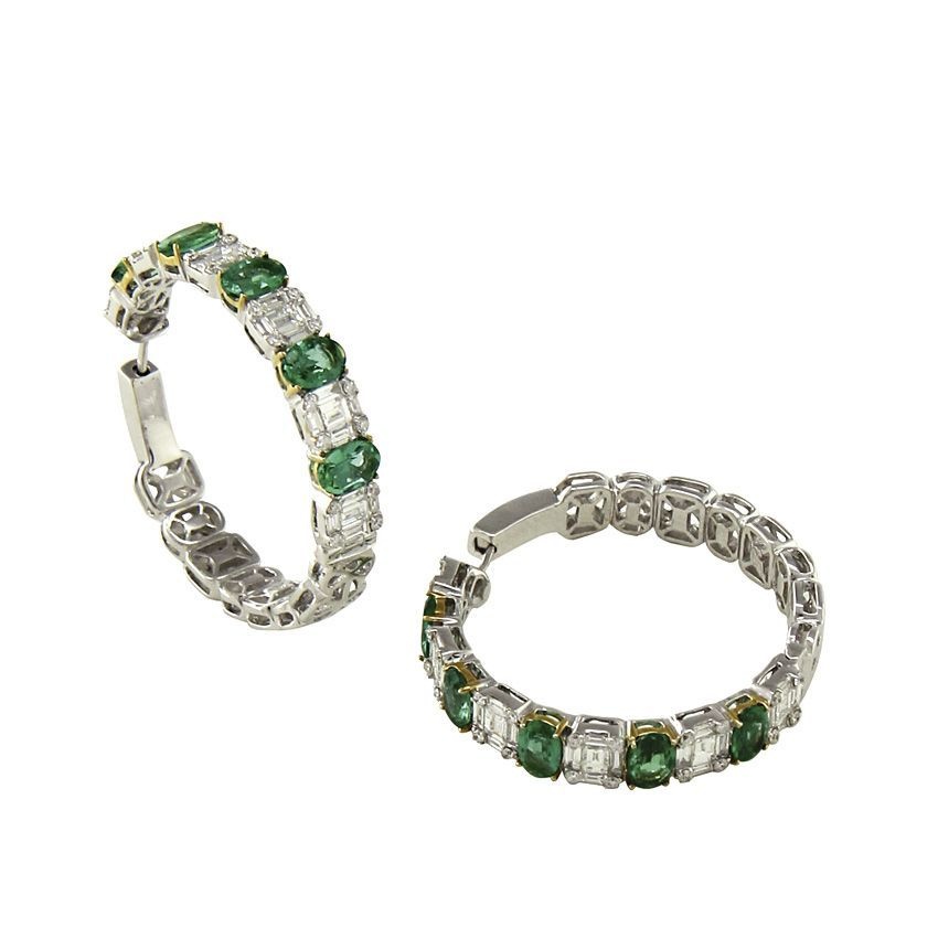 Brinco Argola-Esmeralda c/ Diamantes